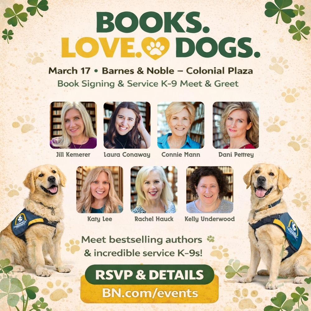 This will be a wristbanded event. To receive your wristband you MUST PURCHASE a book by one of our featured authors on the day of the event at Barnes & Noble Colonial. This purchase will grant you ONE WRISTBAND that allows you entry to the event with Katy Lee, Dani Pettrey, Rachel Hauck, Connie Mann, Laura Conaway, Kelly Underwood, and Jill Kemerer!